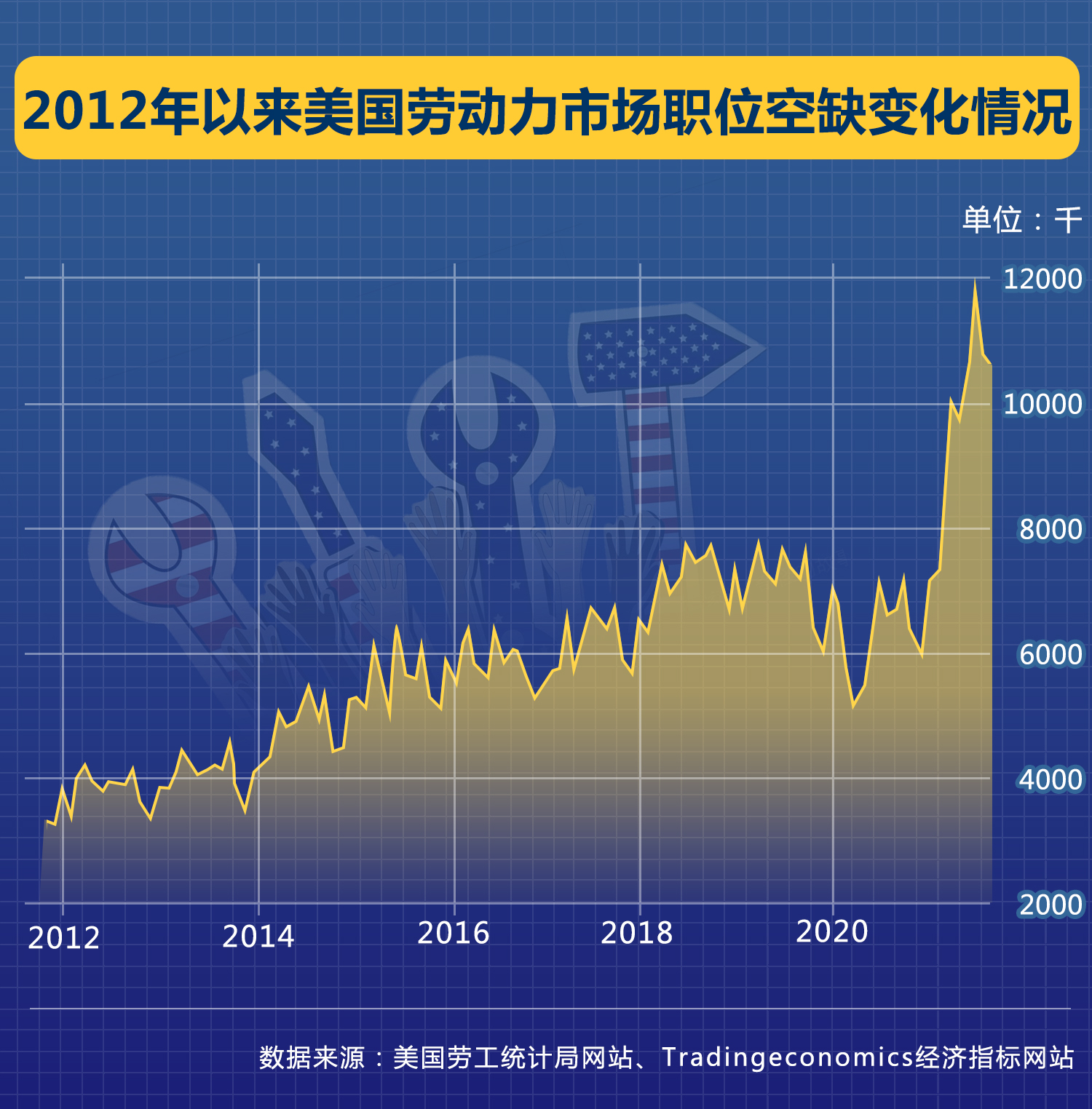 疫情以来,针对企业和个人大规模的、强力的和快速的救济、补贴和经济刺激政策以及疫苗普及利好经济重启是推动美国经济和需求复苏的主要动力。但是美国的劳动参与率却一直维持在低位,职位空缺一直超过失业人数。这显然制约了供给的增长。