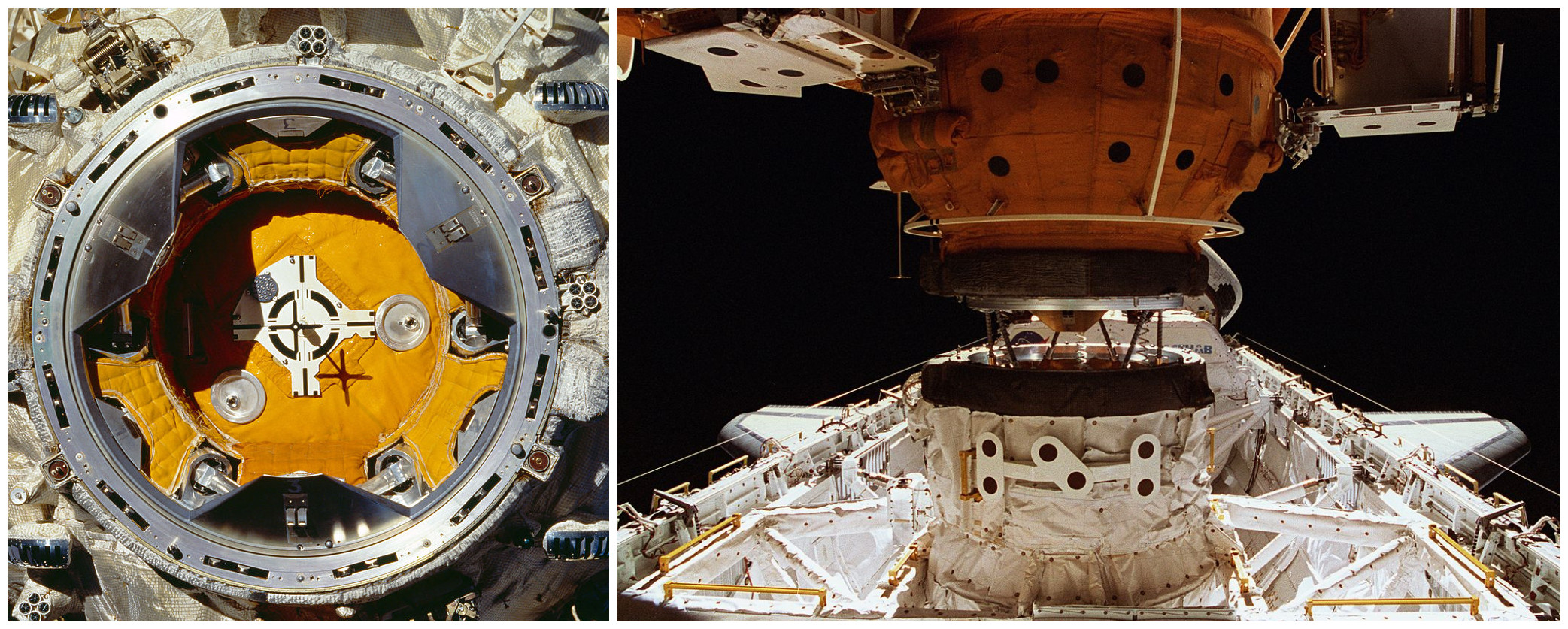 和平号空间站上的APAS-89对接机构及和平号-航天飞机对接。来源:NASA