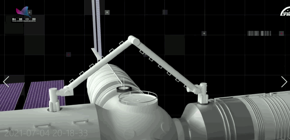 中国空间站机械臂抓取飞船再对接示意图。来源:科普中国