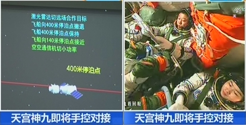 神舟九号-天宫一号手动交会对接中的停泊点设置。来源:CCTV