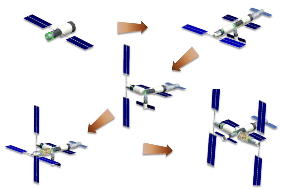 ▲中国空间站在轨组装过程(图源:中国载人航天工程办公室)