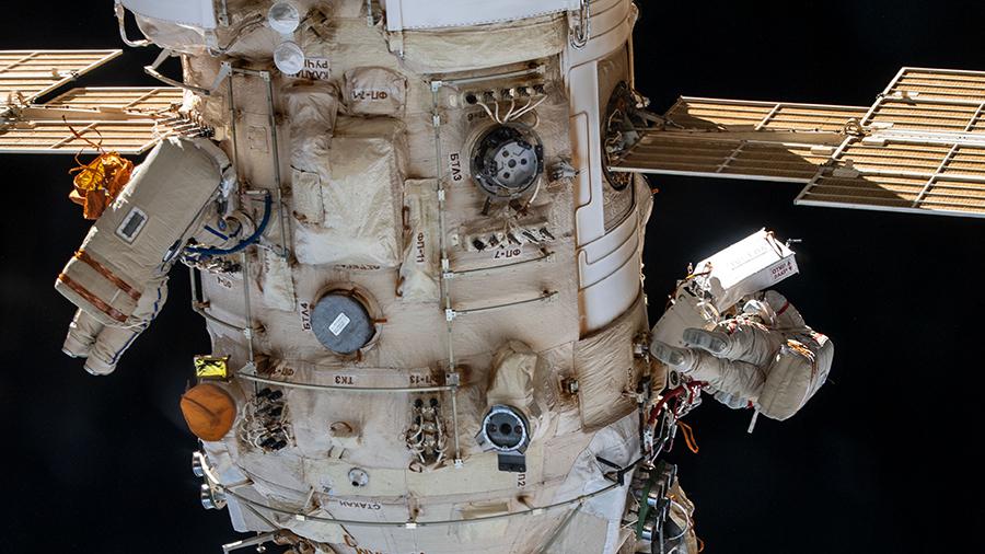 ▲2022年4月28日,俄罗斯航天员实施国际空间站第250次出舱活动,设置帮助启用新的欧洲机械臂。(图源:NASA)