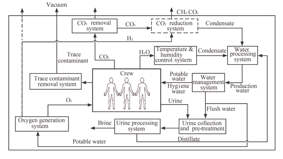 ▲空间站再生生保系统架构(图源:航天医学与医学工程)