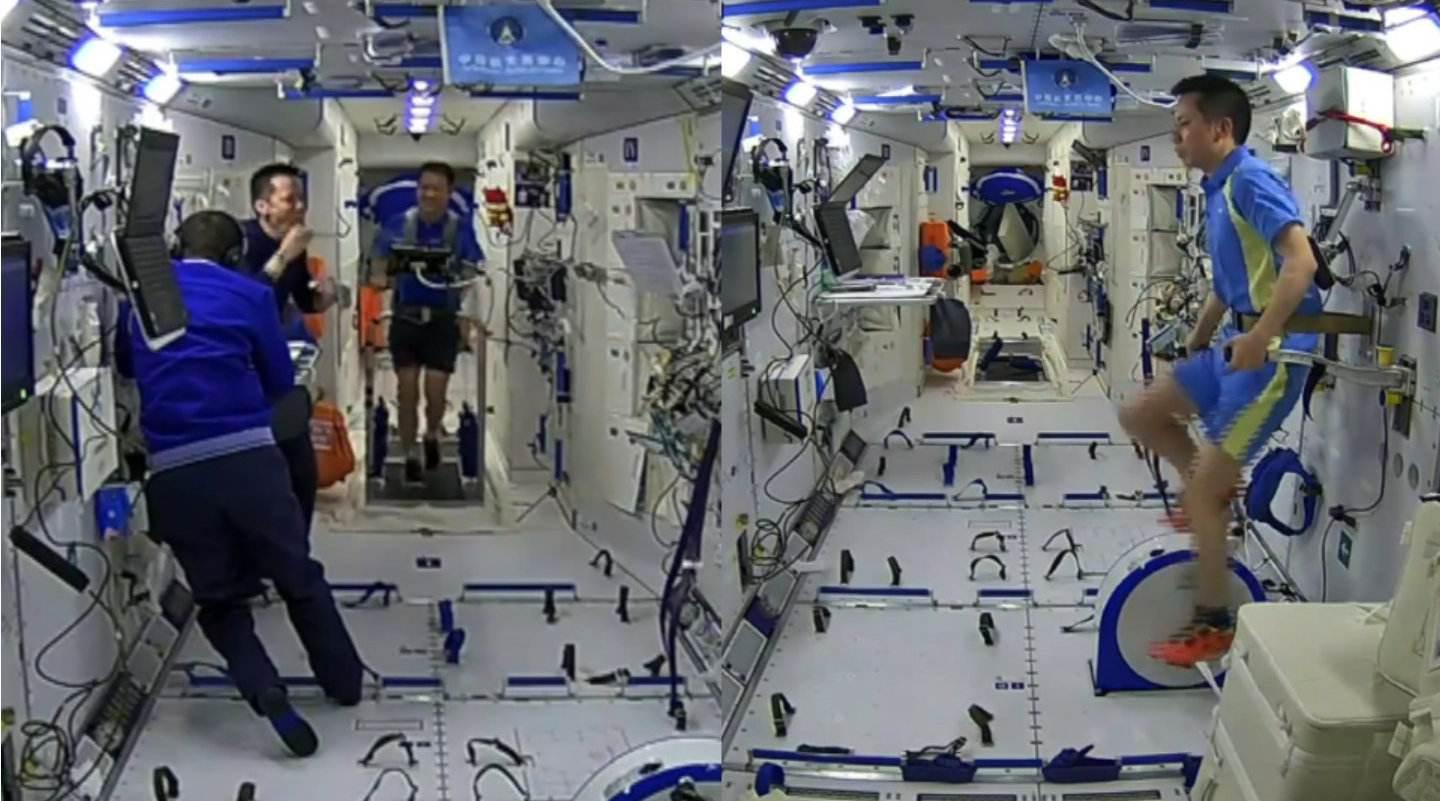 ▲神舟十二号航天员在轨锻炼(图源:中国空间技术研究院)