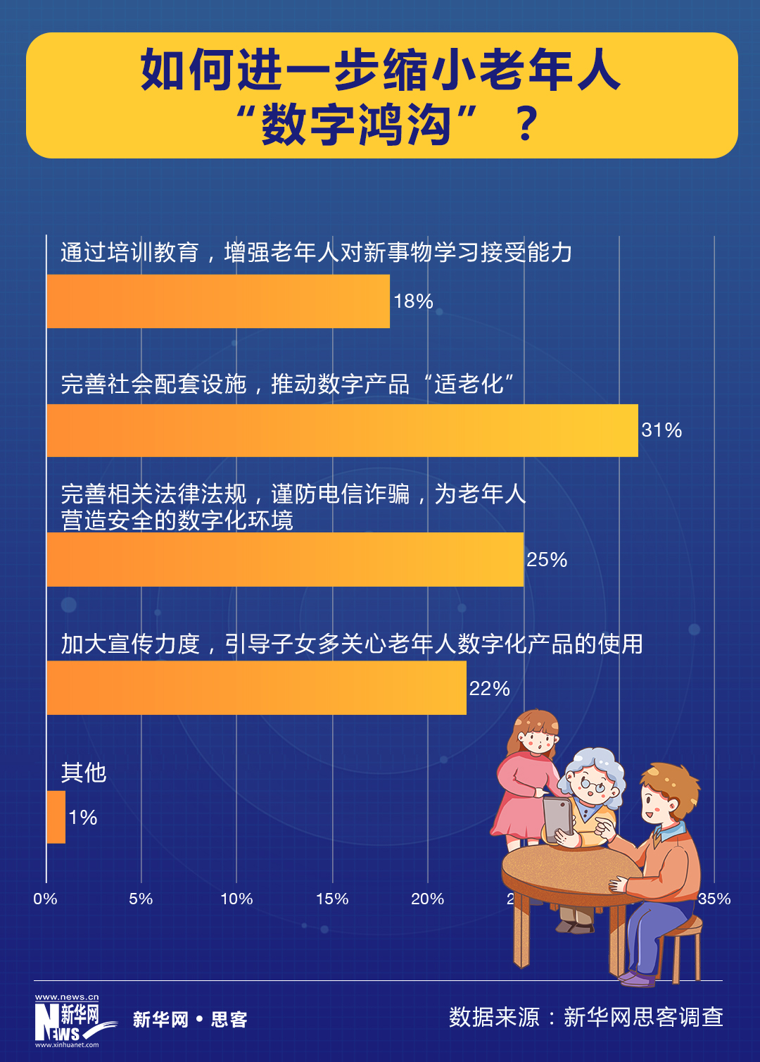 老年人面临的“数字鸿沟”问题是由多方面原因造成的,因此,数字时代不让老年人“掉线”应多管齐下。