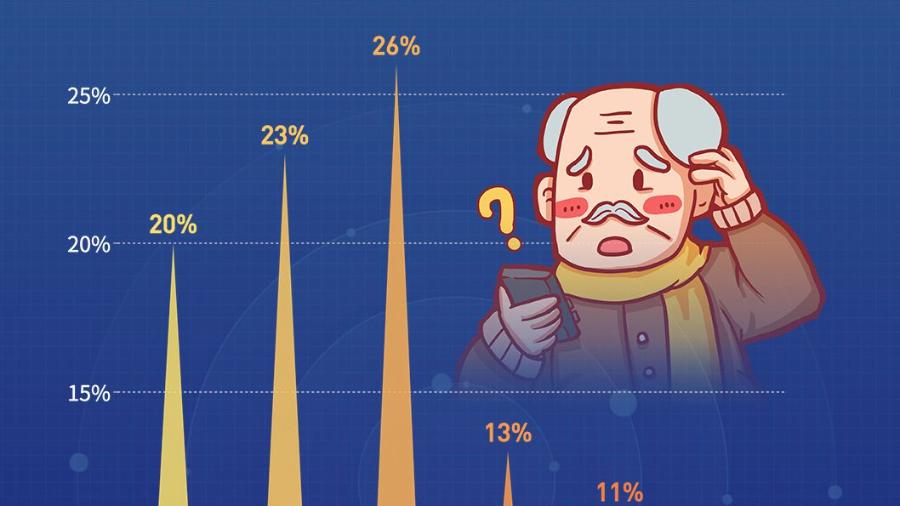 其中“使用智能手机进行医院挂号、网约车、火车票购票等生活服务”在老年人群体使用智能设备时遇到的尴尬较多,占比26%。有网民称,自己年纪大了,智能手机刚刚上手,才学会用手机听歌、微信聊天,而用手机软件挂号这些复杂操作学起来很吃力。