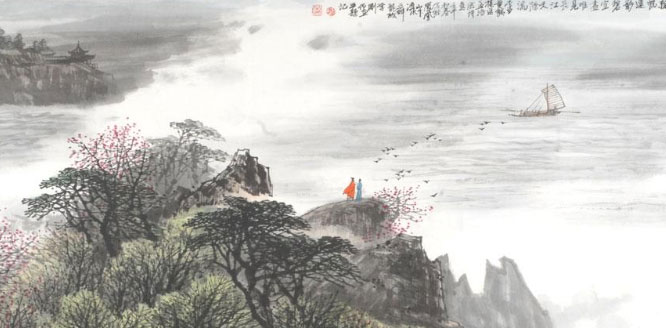 自古楚国多才子。楚人孟浩然,诗才横溢。八月湖水平,一个“平”字,惟妙惟肖地描述出了洞庭湖烟波浩渺水天一体壮丽景色。