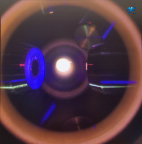▲中国空间站无容器材料实验柜中的壳/核型样品熔化实验(图源:中国载人航天)