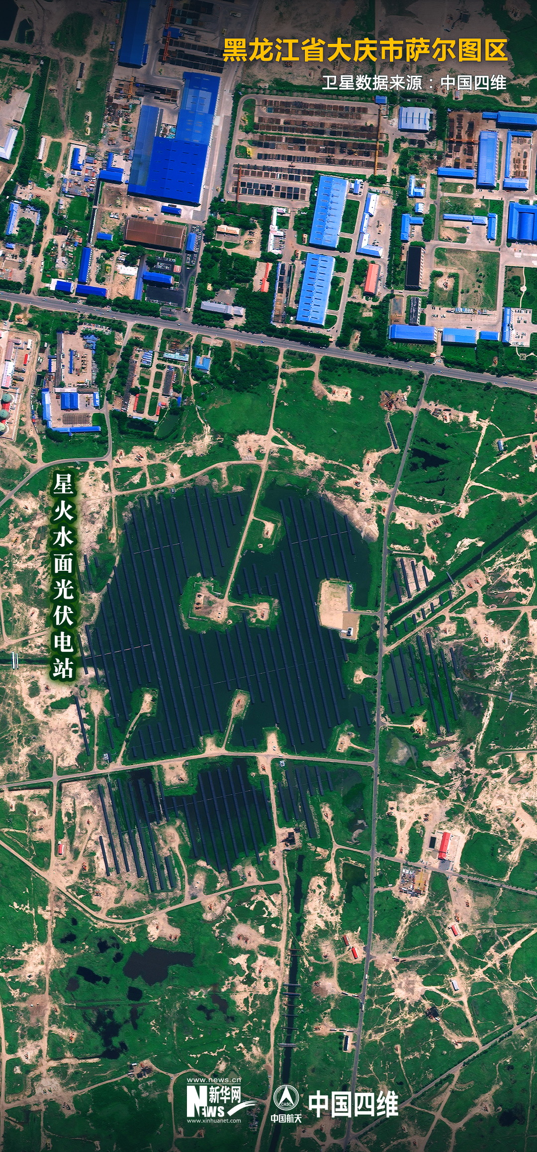 大庆油田星火水面光伏电站局部(无人机照片)。新华社记者 王建威 摄