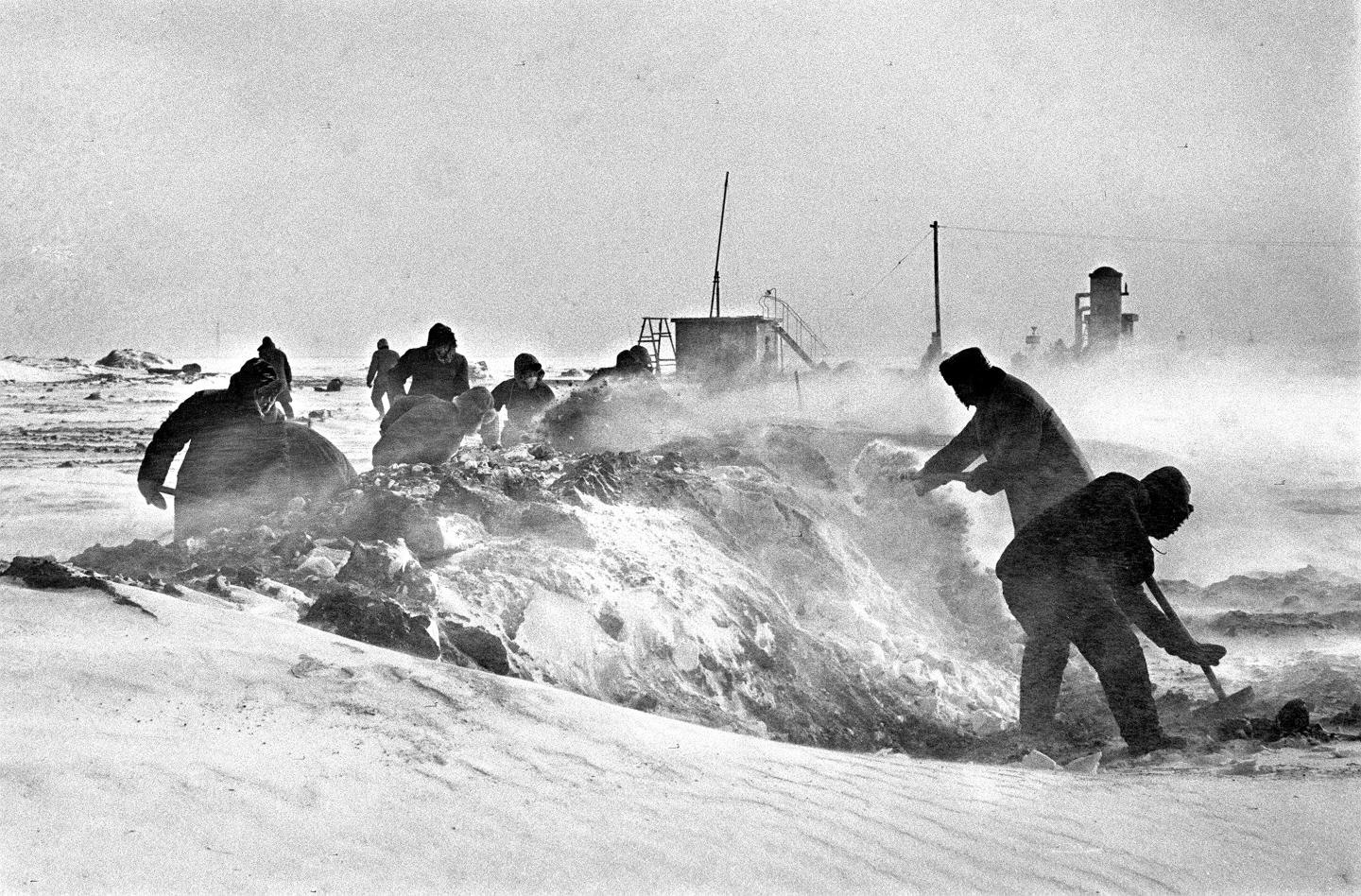1965年,大庆人破冻土,铲积雪,兴建新油井。新华社记者 李基禄 摄