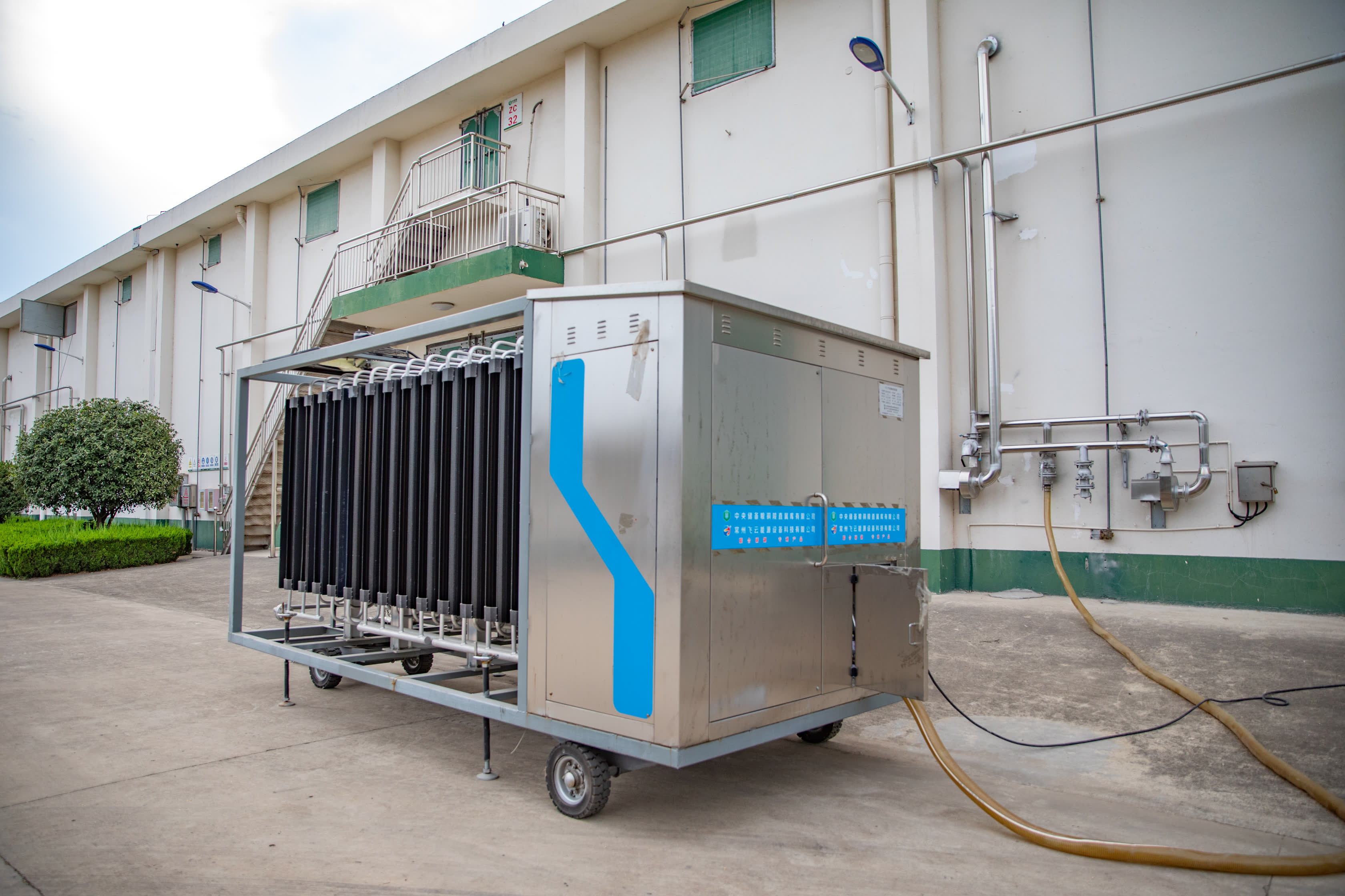 “这是二氧化碳气调杀虫装备。”刘其超向记者介绍,这台装备能将液态二氧化碳快速气化,通过通风系统充入粮仓,无需化学药剂,仅需15天左右就可以把仓内害虫灭活,能够实现绿色储粮。“相比氮气气调技术,二氧化碳杀虫浓度仅需35%,杀虫周期也缩短近一半。” 刘其超说。