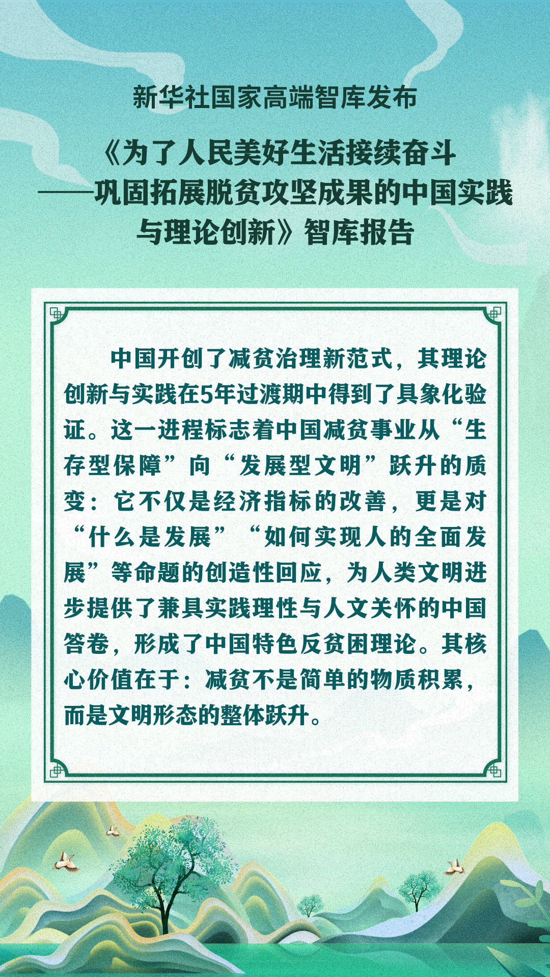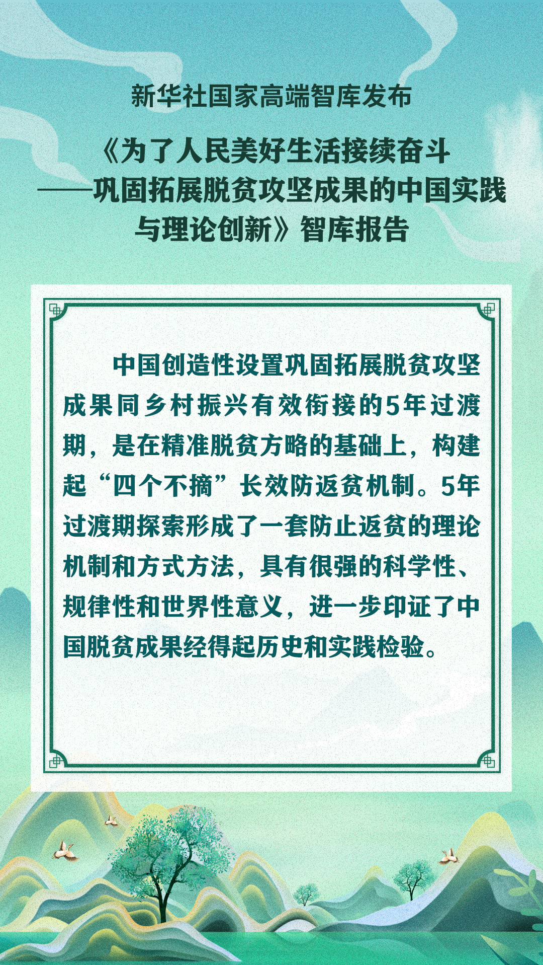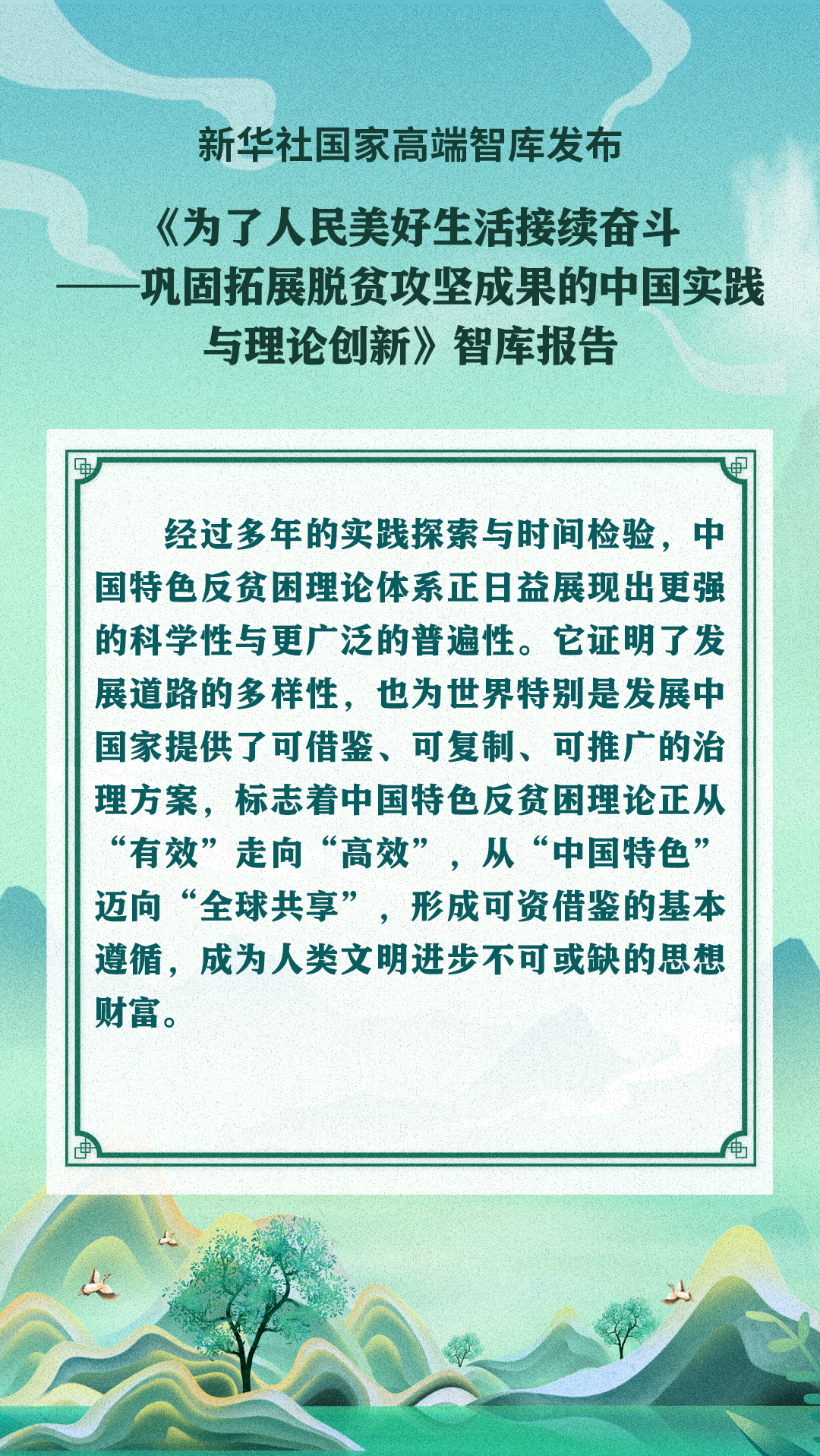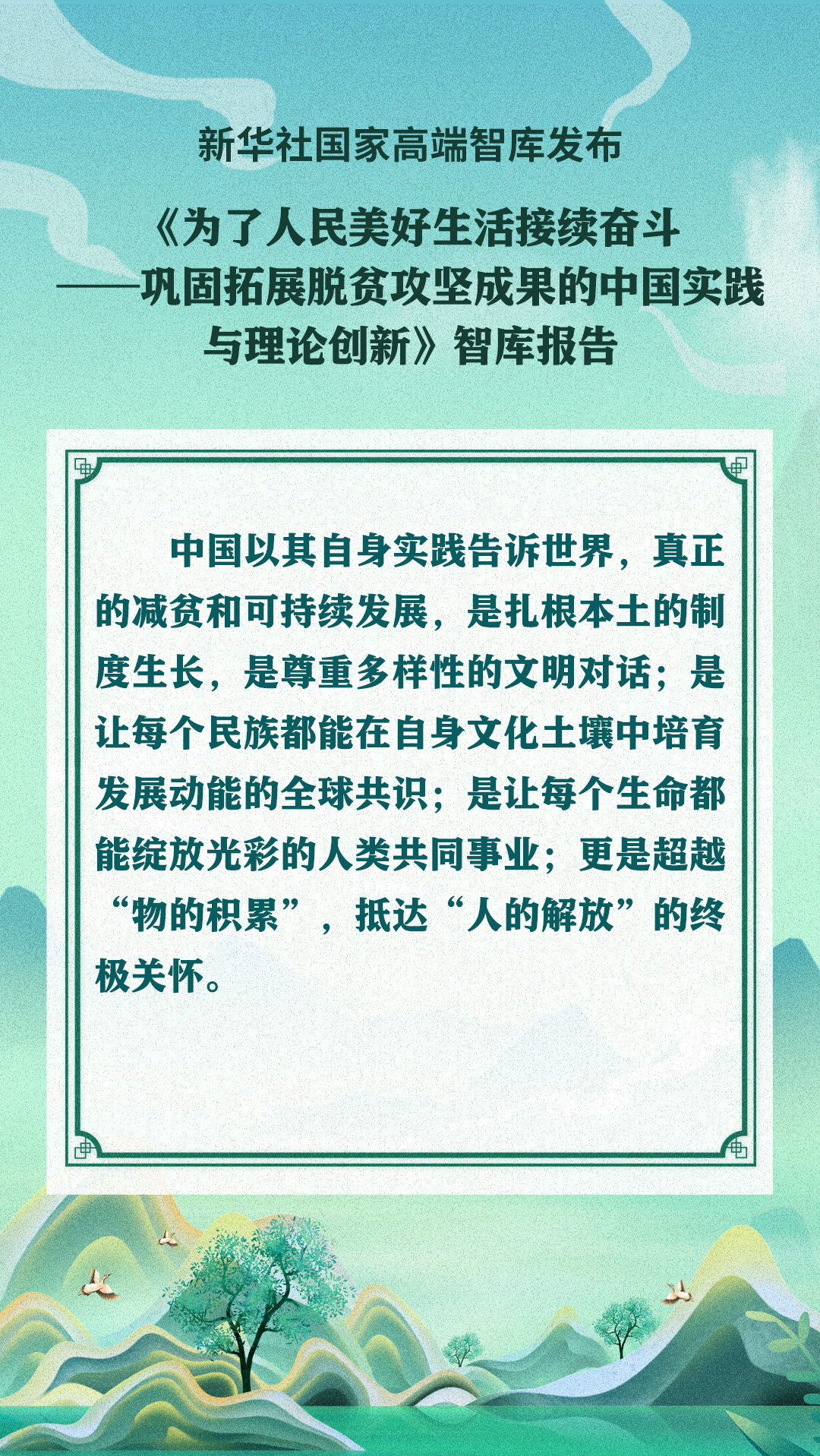 7月11日,新华社国家高端智库发布《为了人民美好生活接续奋斗——巩固拓展脱贫攻坚成果的中国实践与理论创新》智库报告。