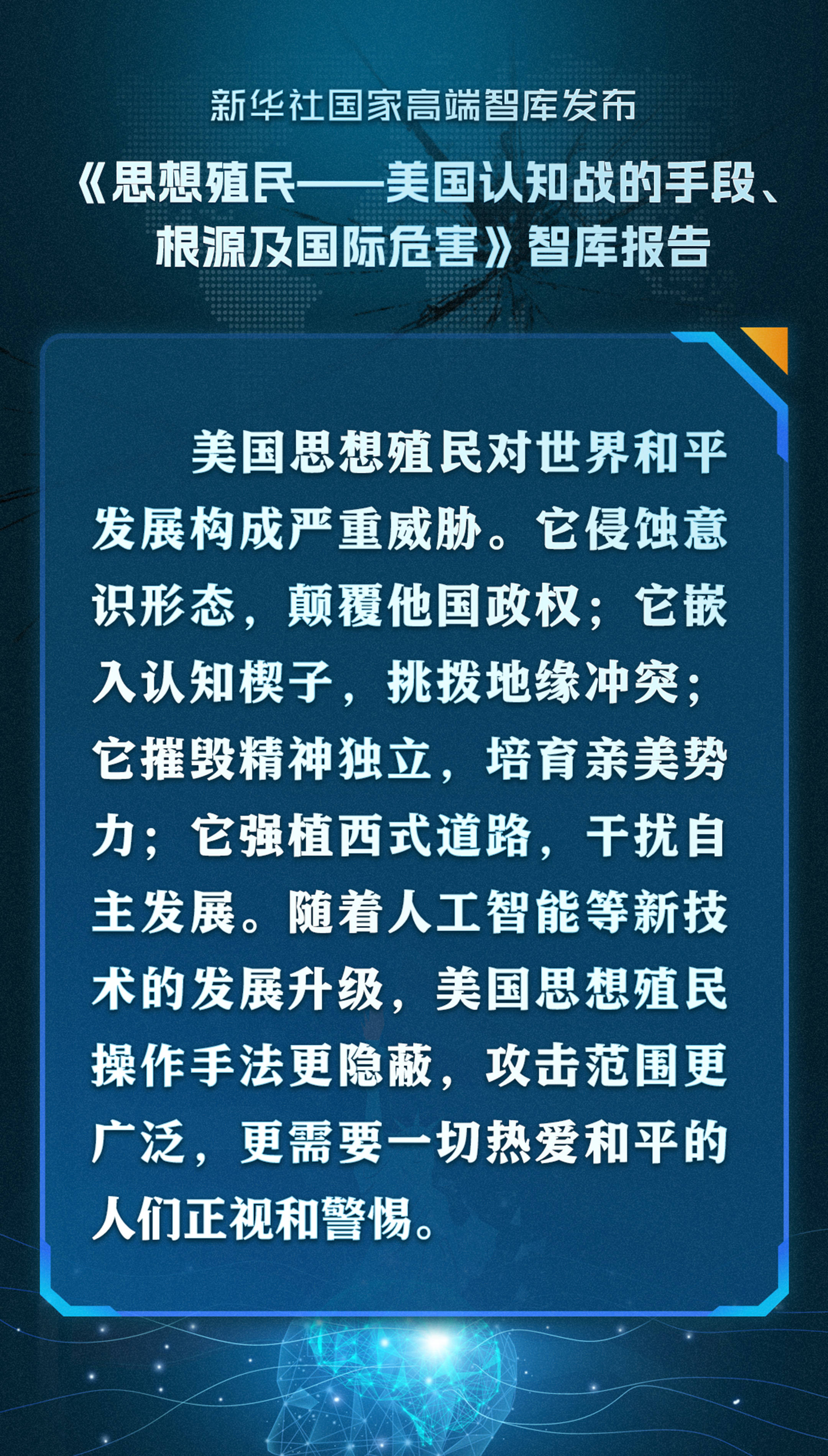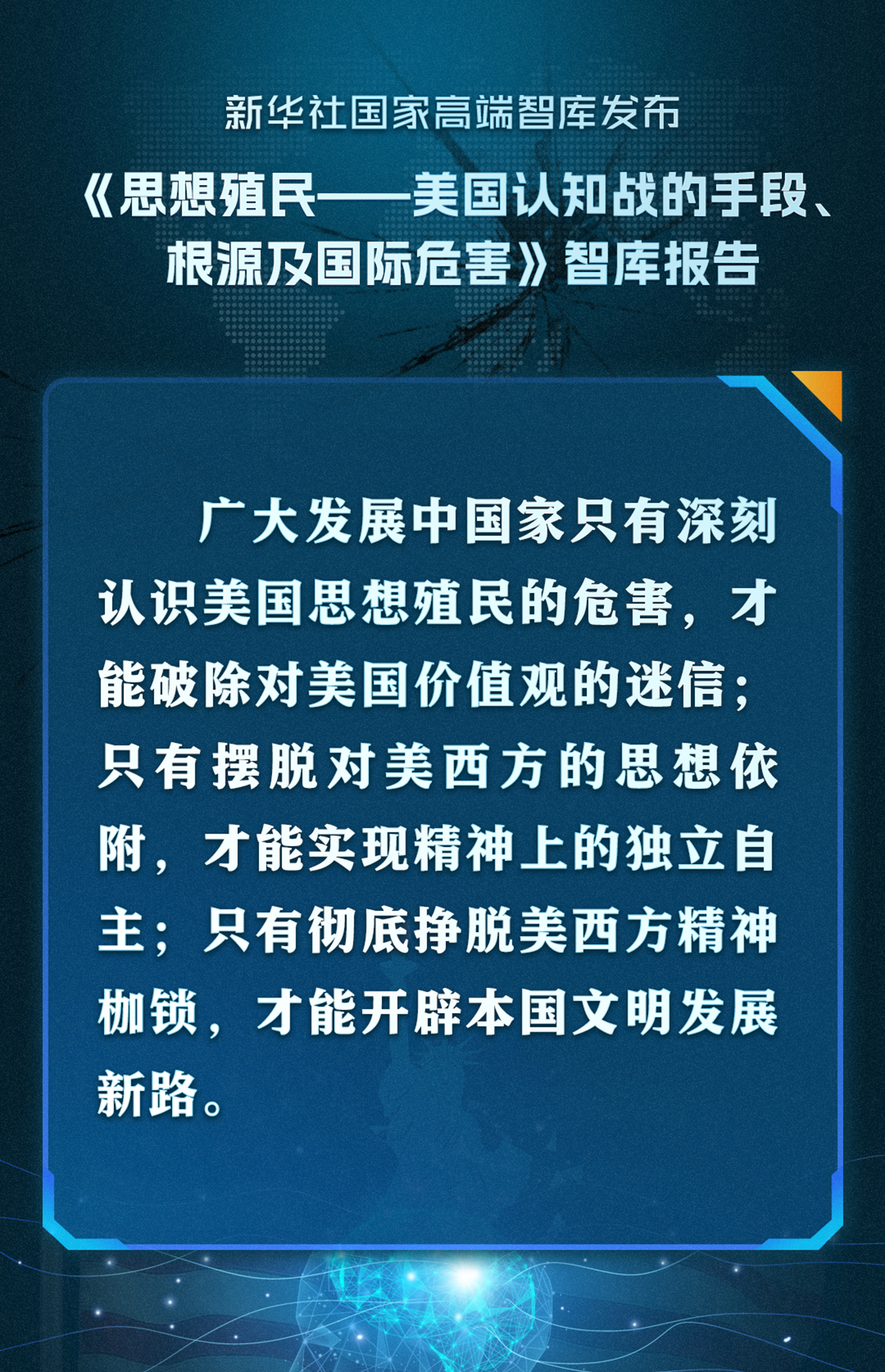 9月7日,新华社国家高端智库在云南昆明举行的2025全球南方媒体智库高端论坛上,发布智库外宣报告《思想殖民——美国认知战的手段、根源及国际危害》。