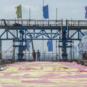 这是3月8日在印度尼西亚勿加泗拍摄的雅万高铁全线最大跨度连续梁合龙现场。