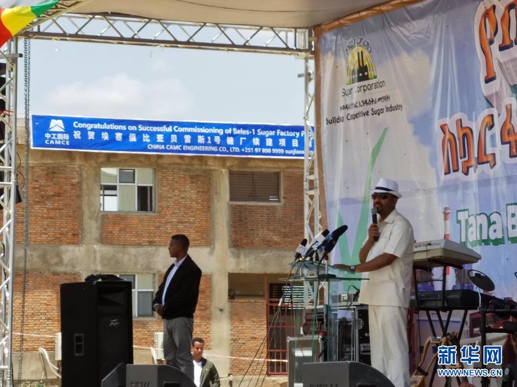 6月6日,埃塞俄比亚总理阿比在阿姆哈拉州出席贝雷斯1号糖厂项目出糖庆典仪式。