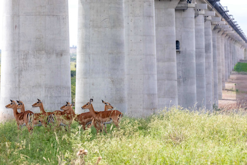 蒙内铁路全线根据动物习性搭建多处高架桥和涵洞,方便它们通行;横跨内罗毕国家公园的特大桥梁采用声屏障梁,降低列车通过产生的噪音;在蒙巴萨红树林湿地公园施工时在红树林生长范围内预埋过水管涵,确保海水能够流入被施工隔断的区域……