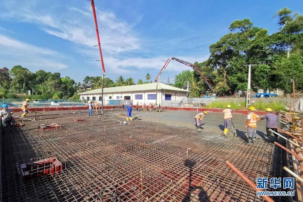 这是3月5日在斯里兰卡康提拍摄的康提北部综合供水工程项目施工现场。