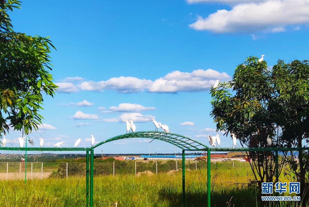 2020年4月4日,在刚果(金)卢阿拉巴省科卢韦齐市紫金矿业旗下穆索诺伊公司矿区,一群小白鹭在此停留。新华社发