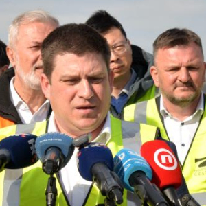 2月19日,克罗地亚海事、运输和基础设施部长布特科维奇在斯普利特出席武切维察道路连接线项目的开工仪式。