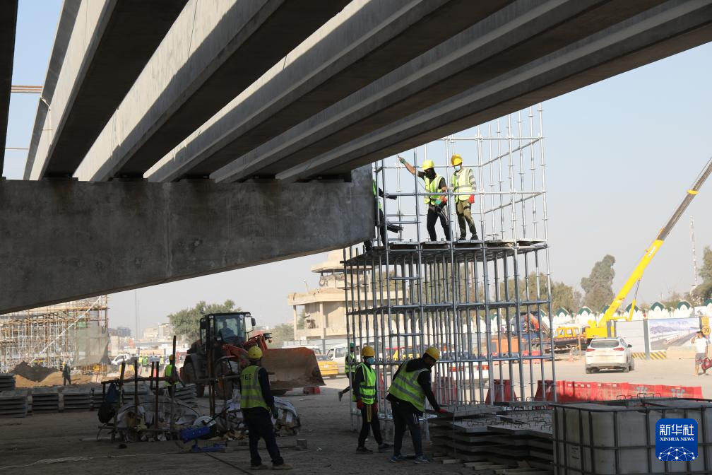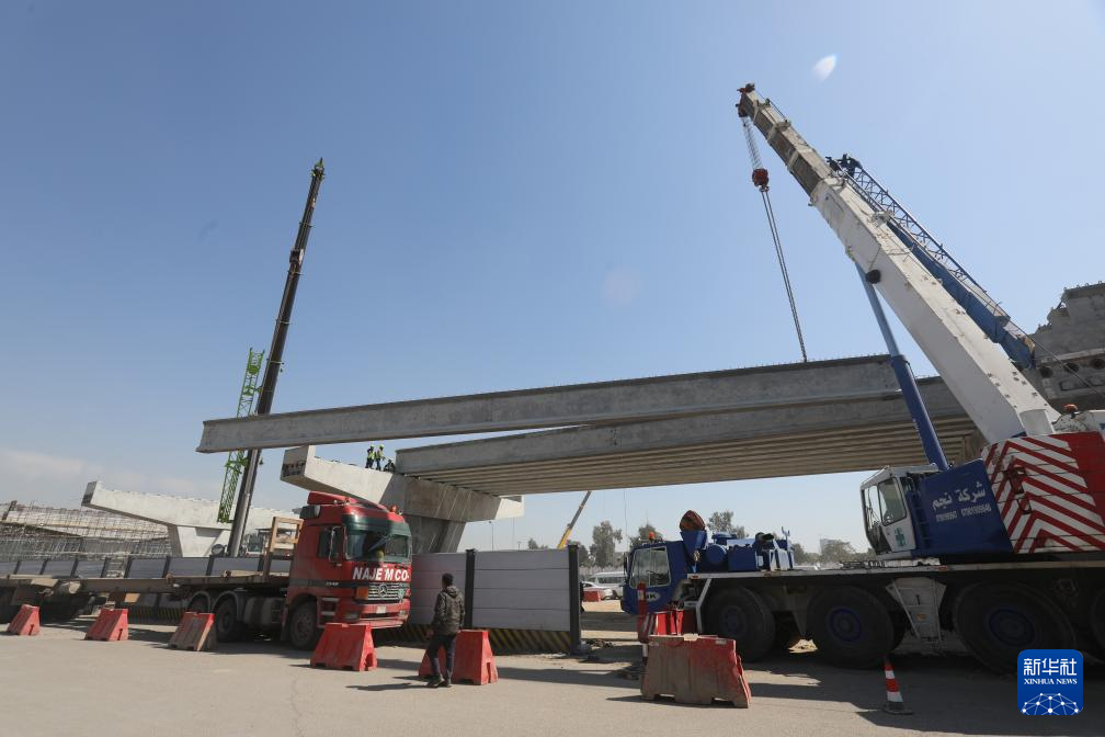 这是3月2日拍摄的伊拉克巴格达尼苏尔立体交通枢纽项目施工现场。