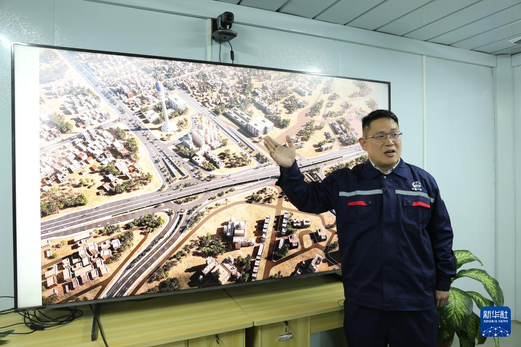 3月2日,伊拉克巴格达尼苏尔立体交通枢纽项目总经理郭小伟在业务工作会上介绍施工情况。