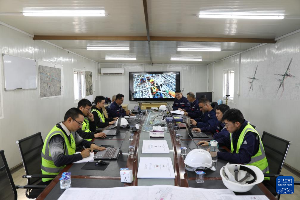 3月2日,中伊员工在伊拉克巴格达尼苏尔立体交通枢纽项目现场召开工作会议。