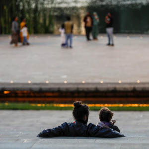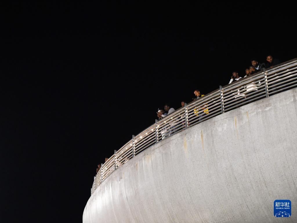 2月18日,在埃塞俄比亚首都亚的斯亚贝巴,游客们在友谊广场欣赏音乐喷泉。