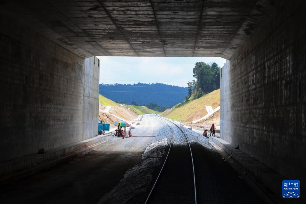 这是5月6日在马来西亚彭亨州拍摄的马东铁项目中的一个隧道。