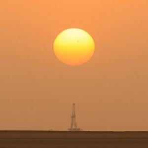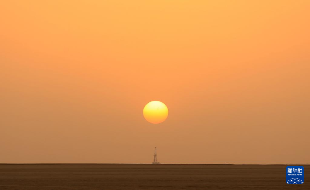 沙漠夕阳下,金色余晖中,高耸的钻机还在为钻探“生命之泉”而轰鸣不息。