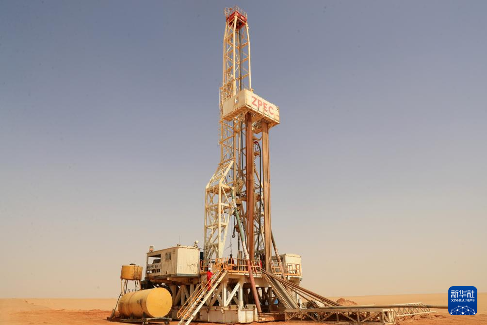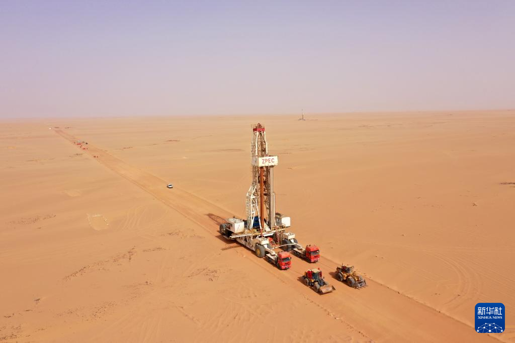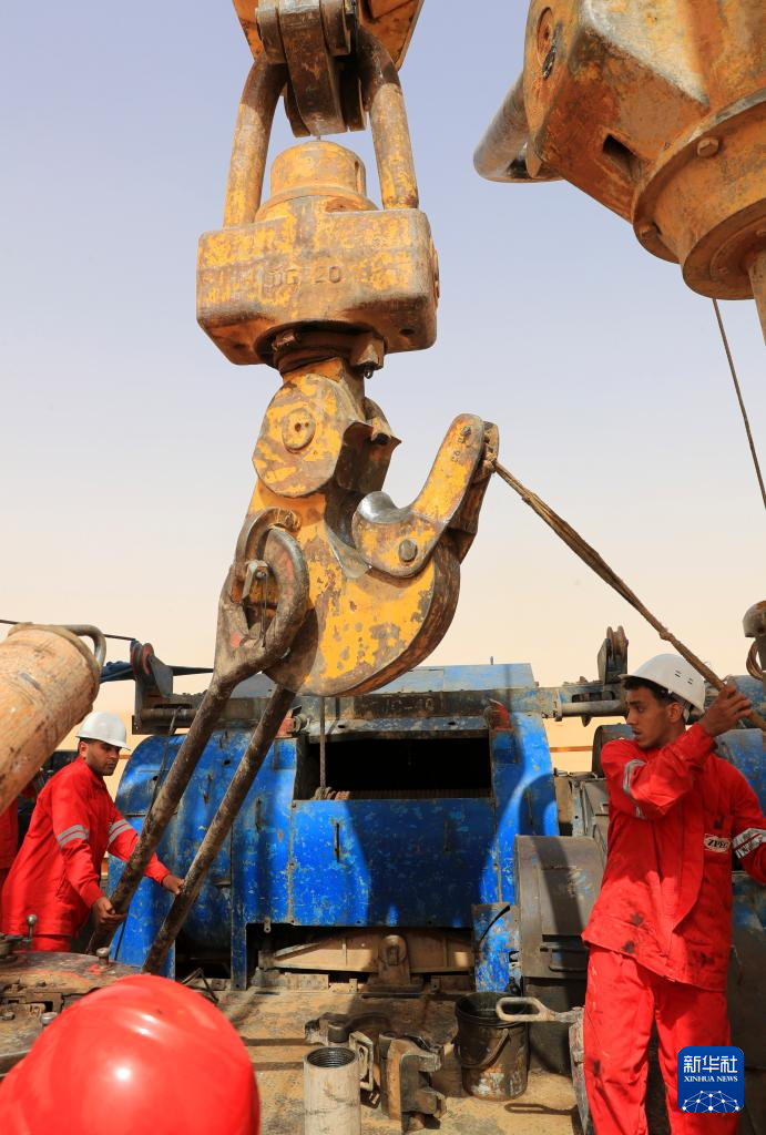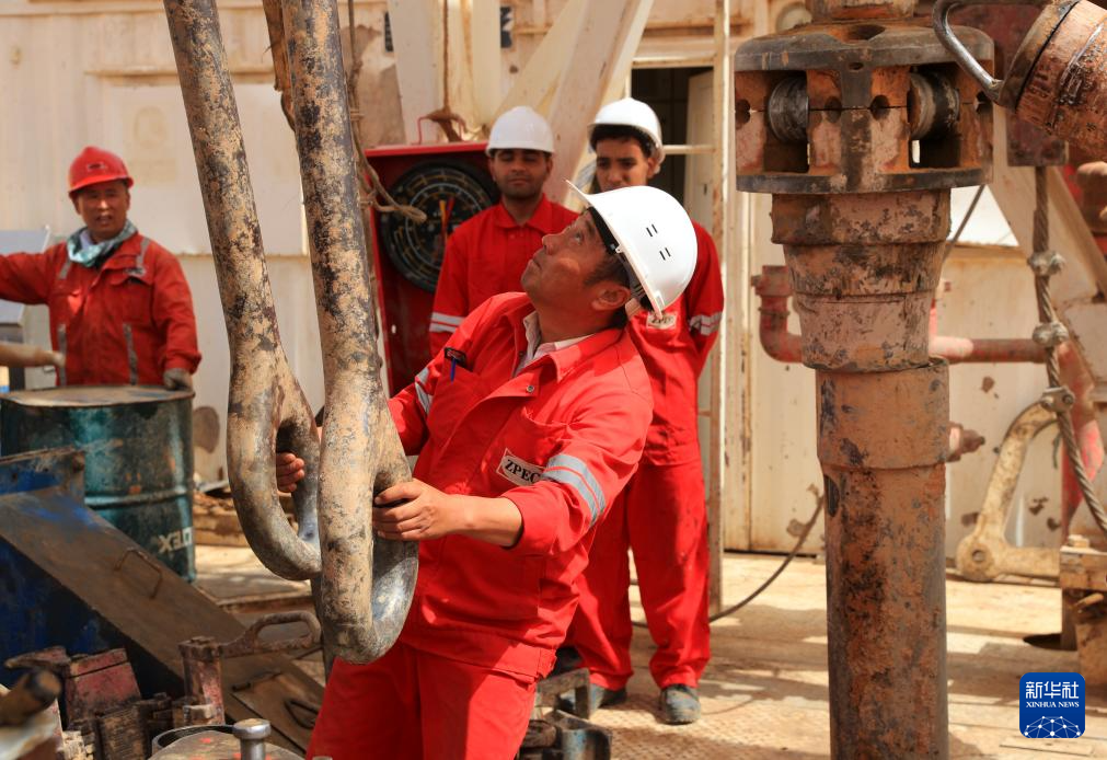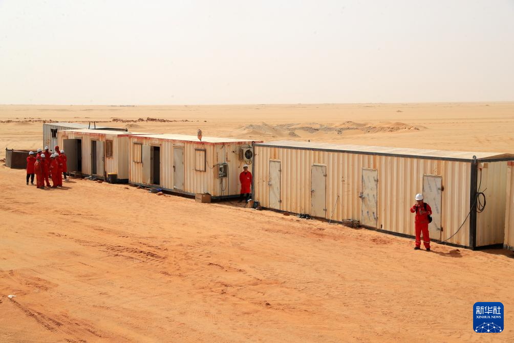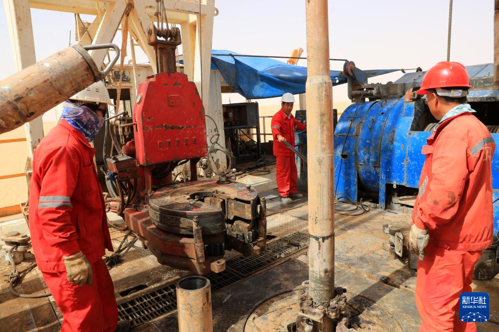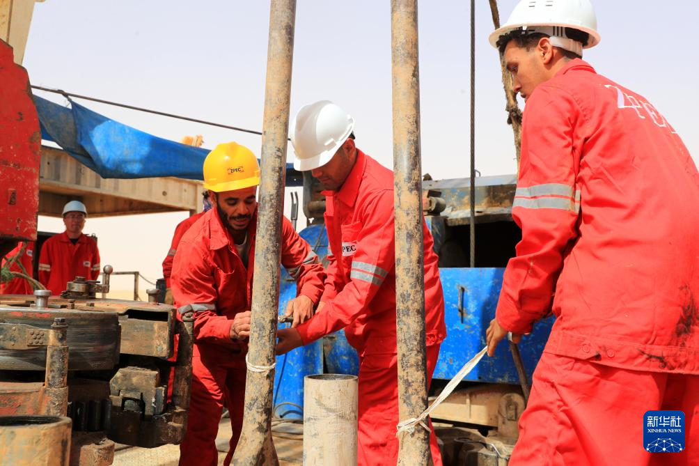 5月3日,中曼埃及公司工人在埃及新河谷省的奥瓦伊纳特水井项目现场作业。