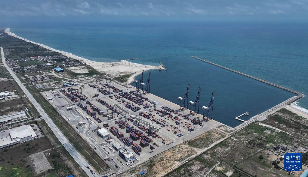 这是2024年3月1日在尼日利亚拉各斯拍摄的莱基深水港(无人机照片)。新华社记者 韩旭 摄