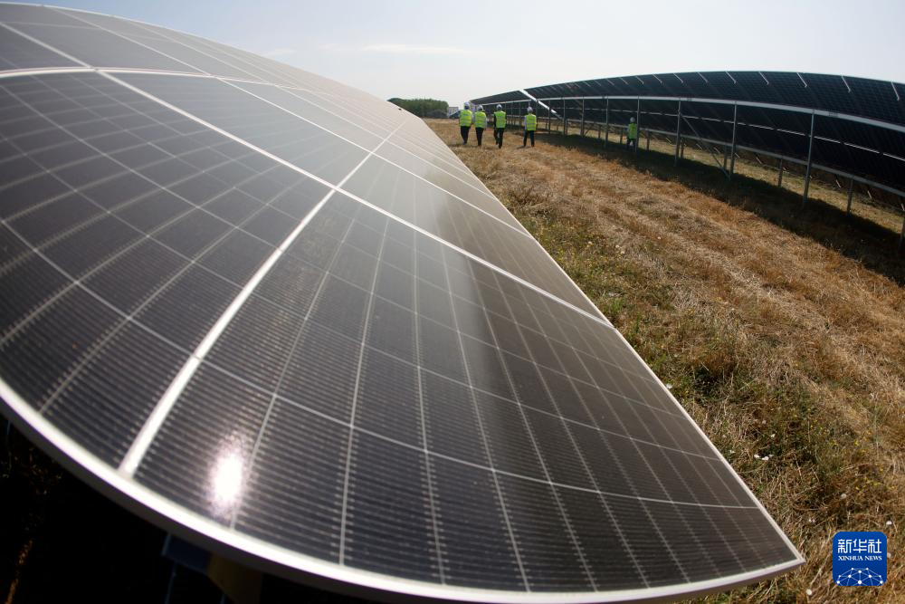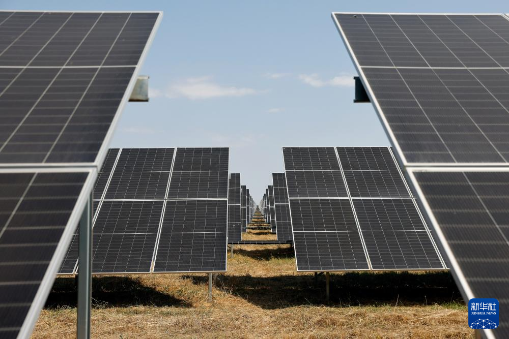 这是8月12日在罗马尼亚东南部克勒拉希县斯特凡大公村拍摄的31.8兆瓦光伏电站项目现场的光伏发电板。