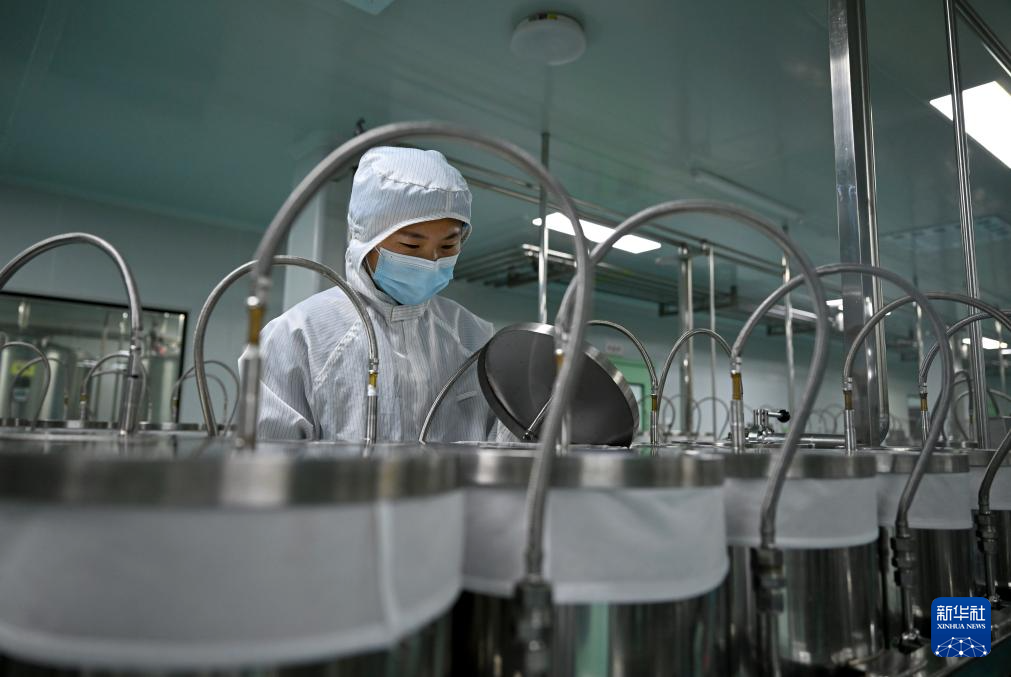 1月27日,在河南濮阳县的中国(濮阳)埃塞咖啡产业示范园冻干车间,工作人员在过滤咖啡液。