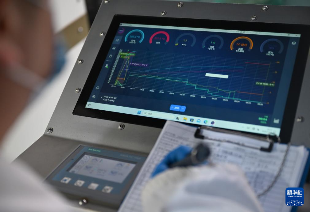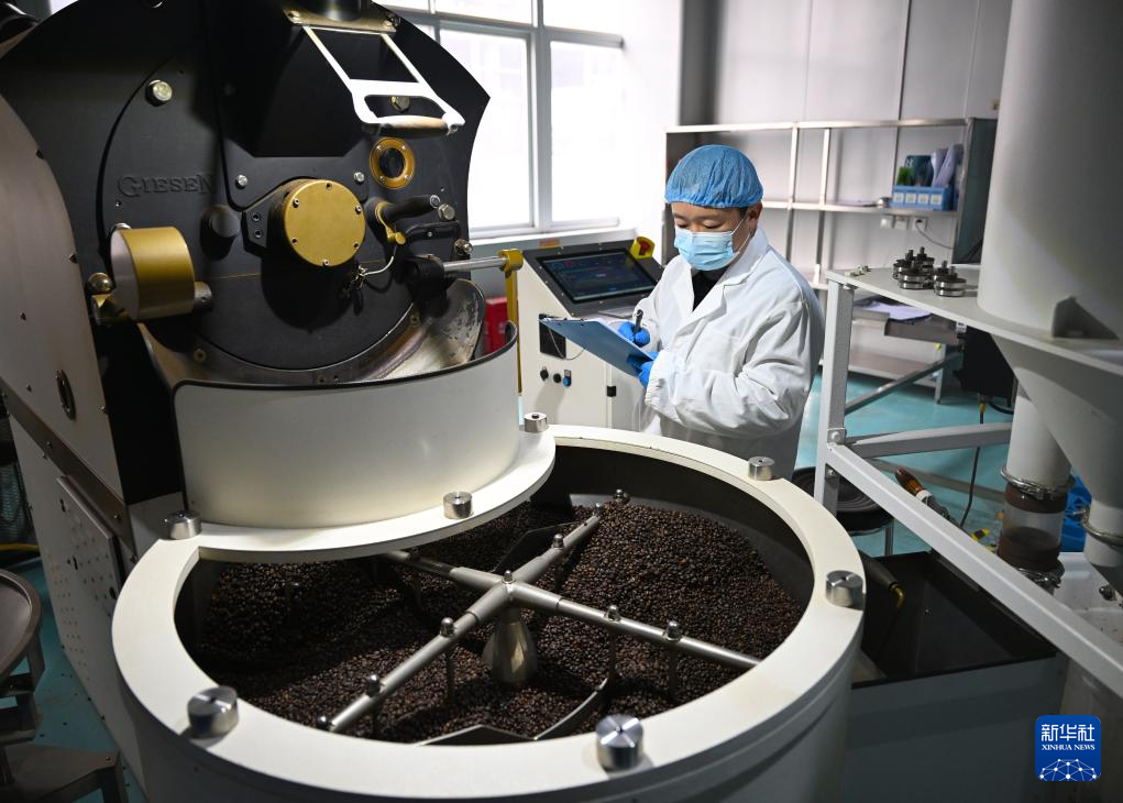 1月27日,在河南濮阳县的中国(濮阳)埃塞咖啡产业示范园烘焙车间,工作人员在记录咖啡豆烘焙数据。