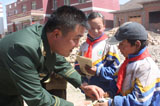 兰州军区某防化团官兵回访舟曲被救儿童