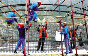 灾后重建工地上的欢歌笑语