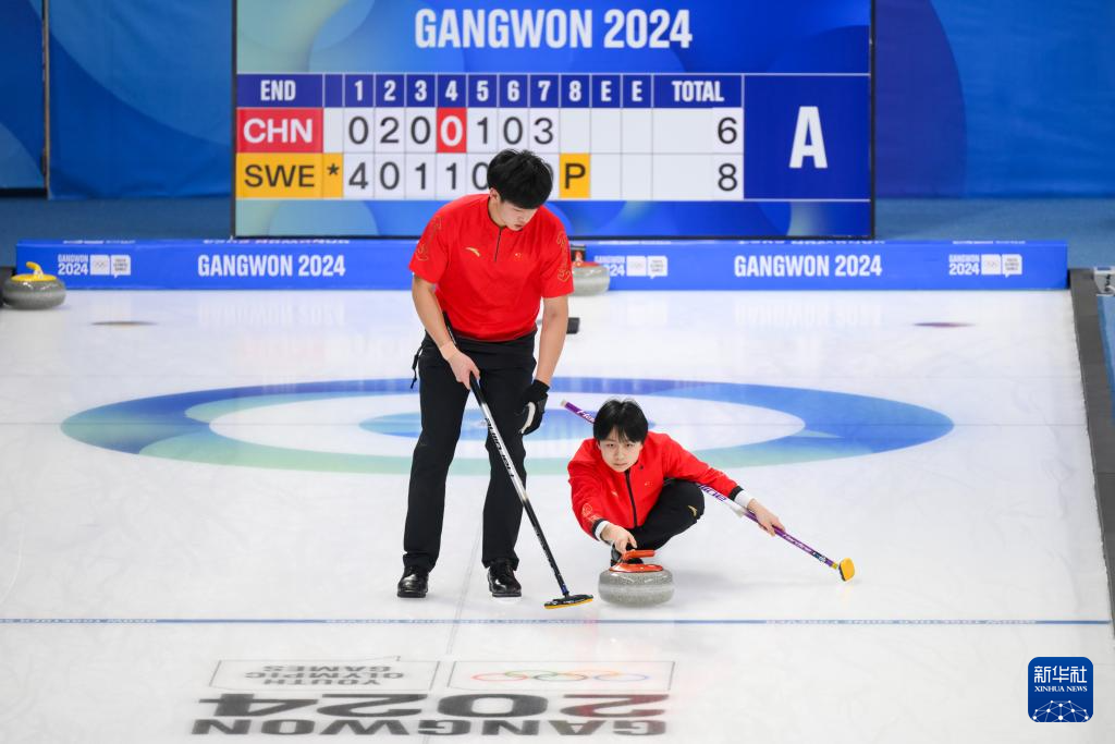 当日,在韩国江陵举行的2024年江原道冬青奥会冰壶混合双人四分之一决赛中,中国组合龚长玉婷/许博康6比9不敌瑞典组合罗克辛/迈耶尔松,无缘半决赛。
