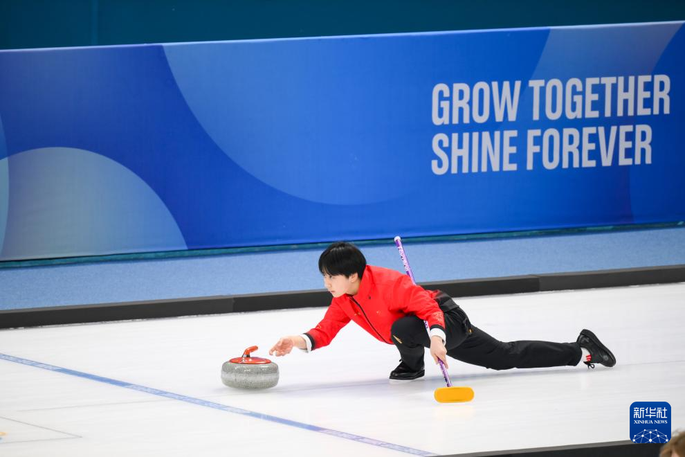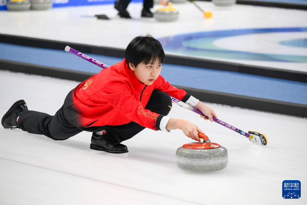 1月31日,中国选手龚长玉婷在比赛中掷冰壶。新华社记者 朱炜 摄