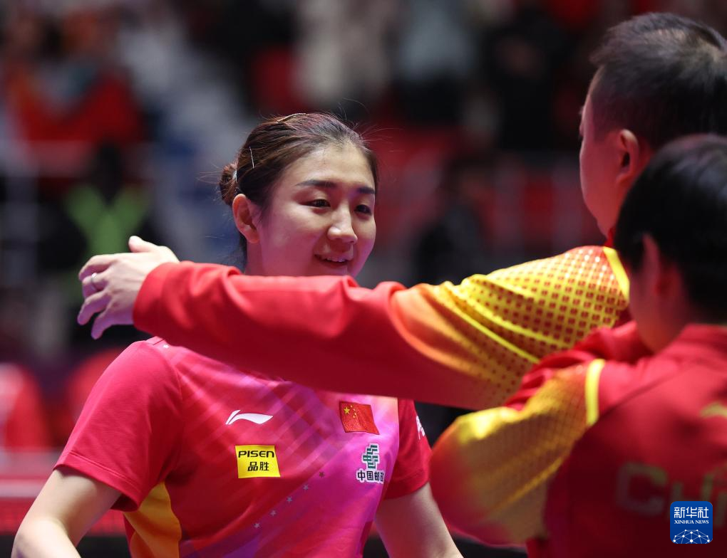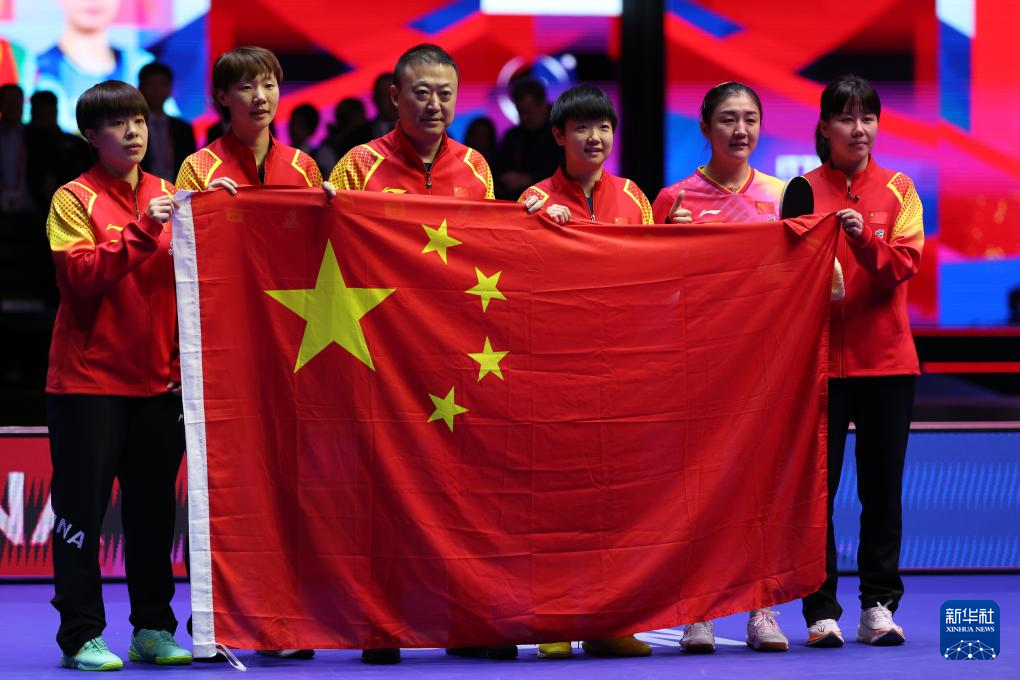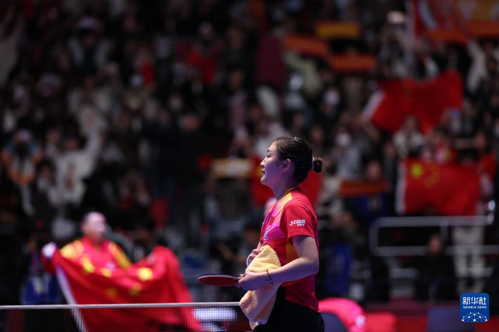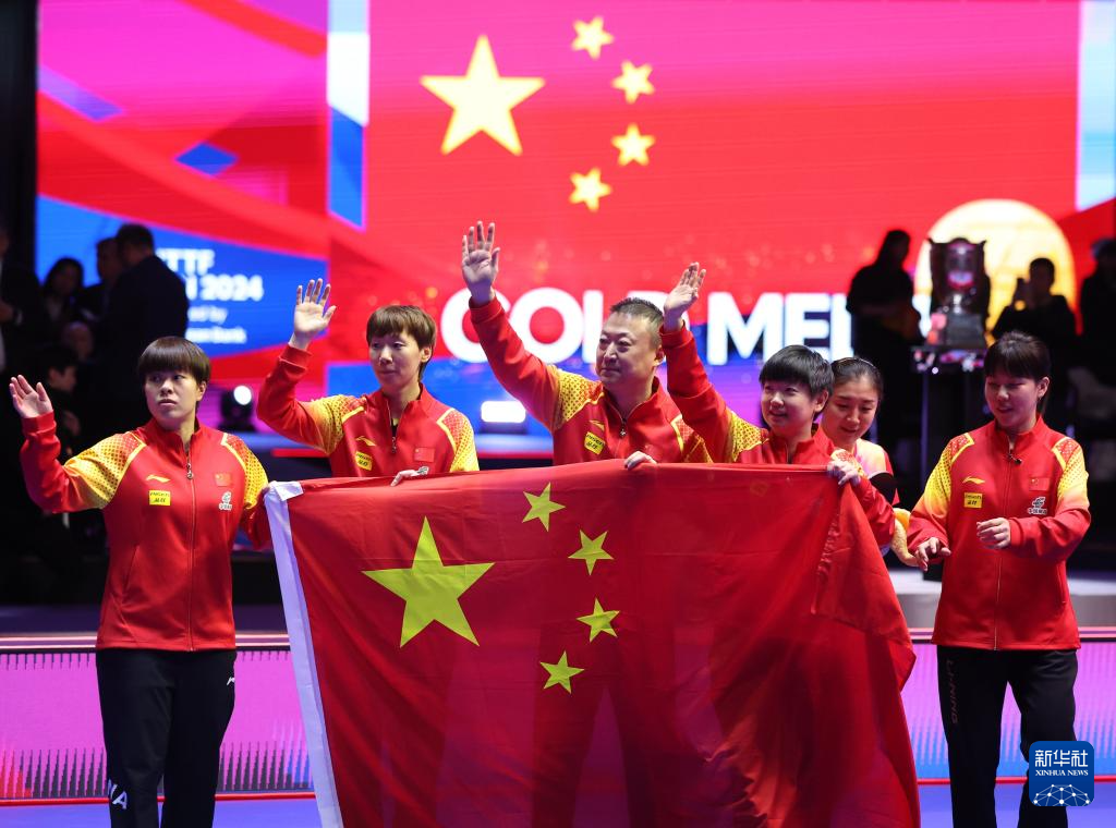 当日,在韩国釜山进行的2024年国际乒联釜山世界乒乓球团体锦标赛女子团体决赛中,中国队3比2战胜日本队,获得冠军。