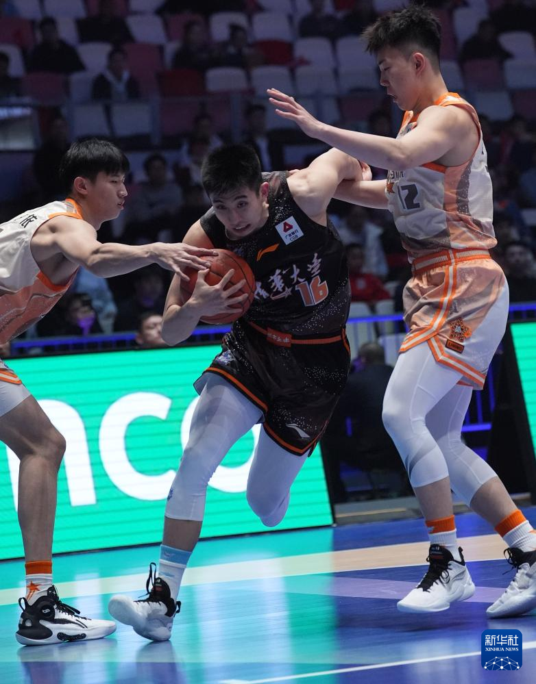 3月2日,清华大学队球员周睿亨(中)在比赛中突破。新华社记者 孟永民 摄
