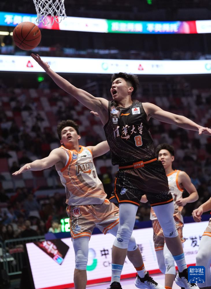 3月2日,清华大学队球员隰泰诚(右)在比赛中突破上篮。新华社记者 孟永民 摄