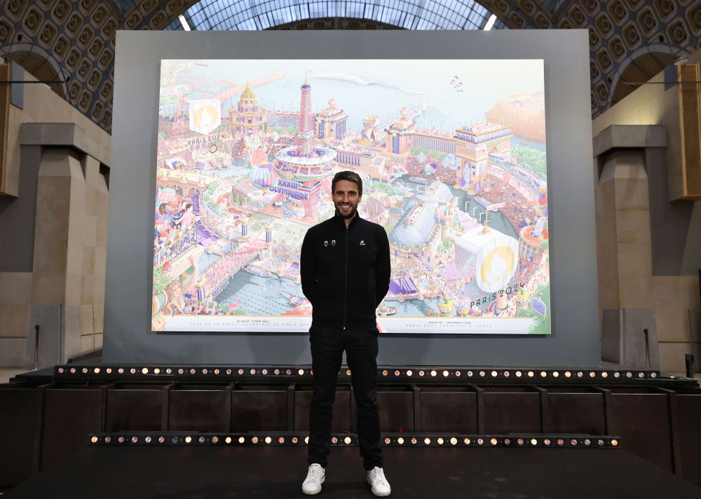 3月4日,由法国插画艺术家乌戈·加托尼创作的巴黎奥运会和残奥会官方海报在巴黎奥赛博物馆正式发布。新华社记者 高静 摄