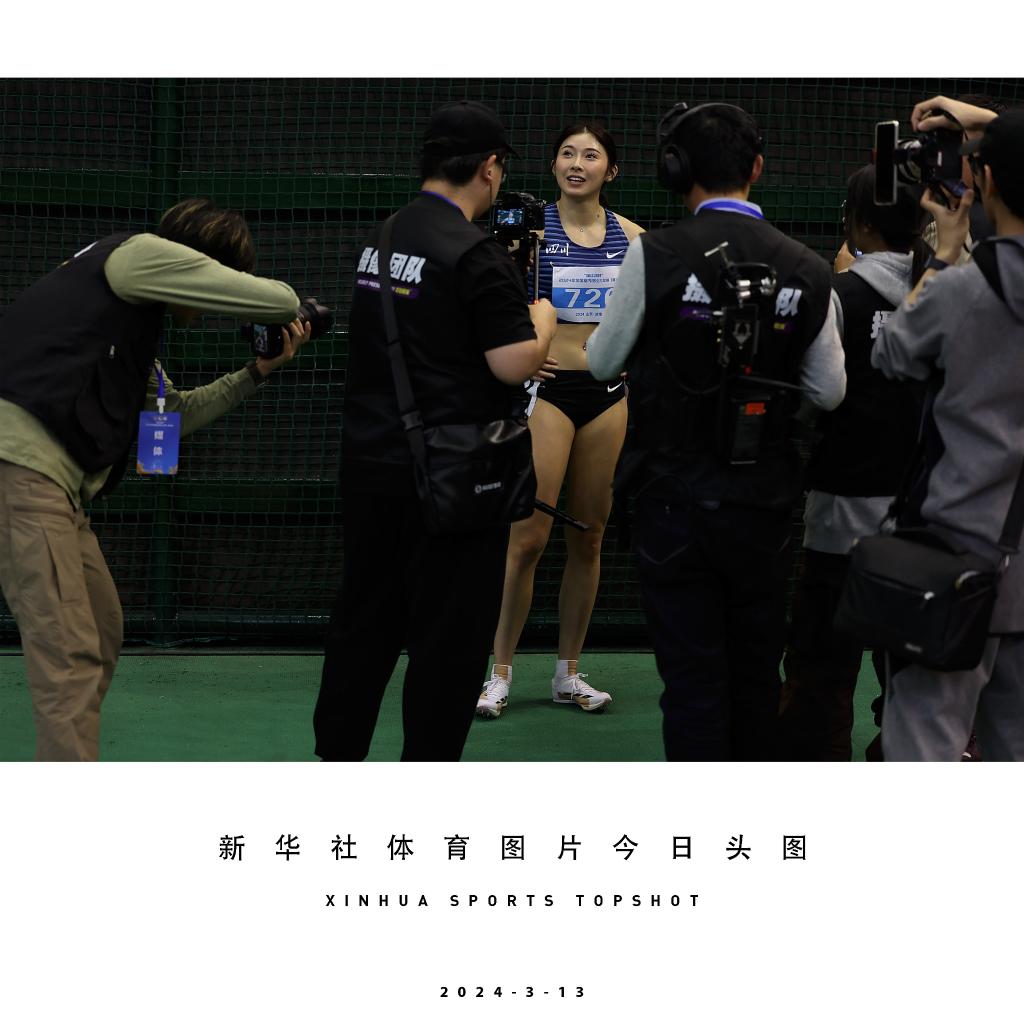 3月13日,四川队选手吴艳妮在女子60米栏决赛后接受媒体拍摄和采访。她以8秒11的成绩获得冠军。新华社记者 廖宇杰 摄
