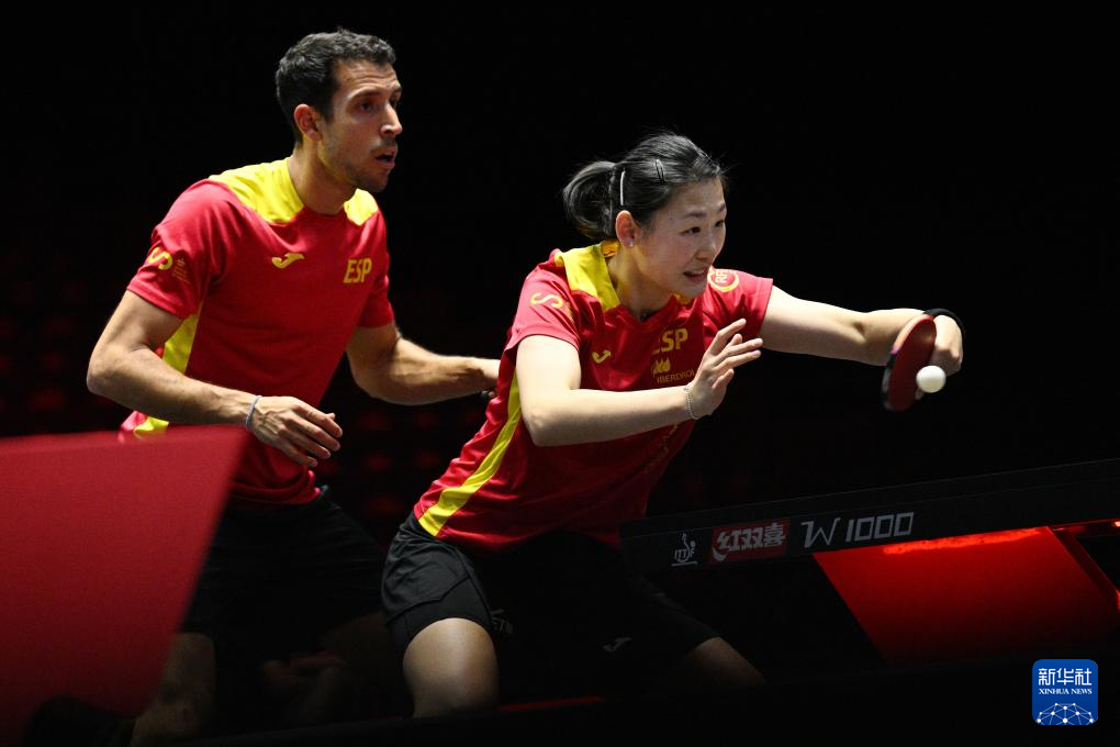 3月13日,孙颖莎/王楚钦(左)在比赛中。新华社发(邓智炜摄)