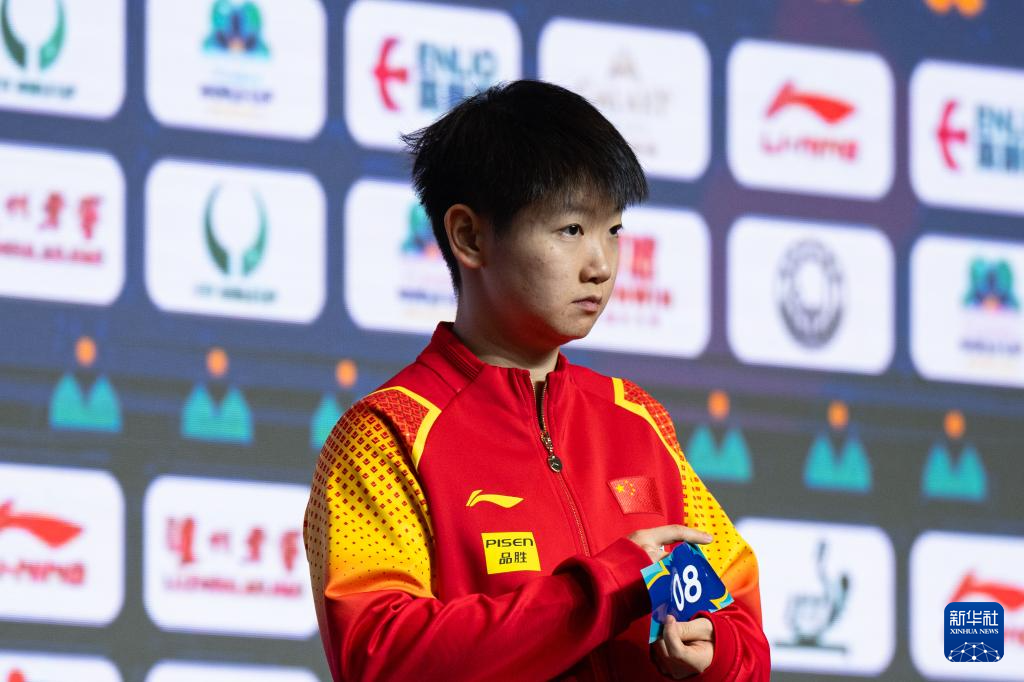 4月14日,中国选手孙颖莎在抽签仪式上。新华社记者 张金加 摄