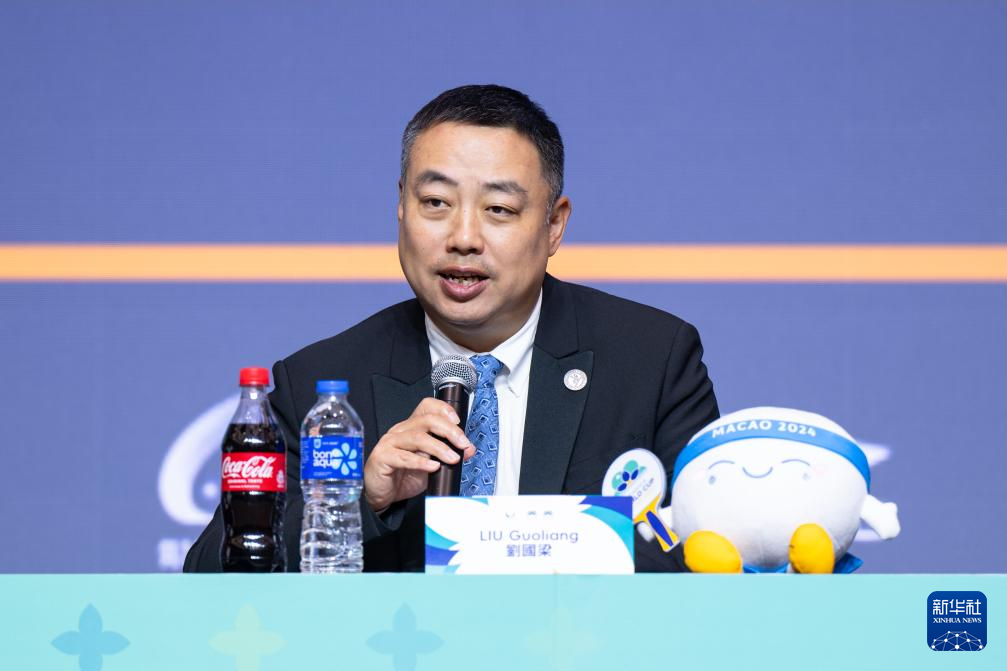 4月14日,澳门特别行政区政府体育局局长潘永权在新闻发布会上发言。新华社记者 张金加 摄