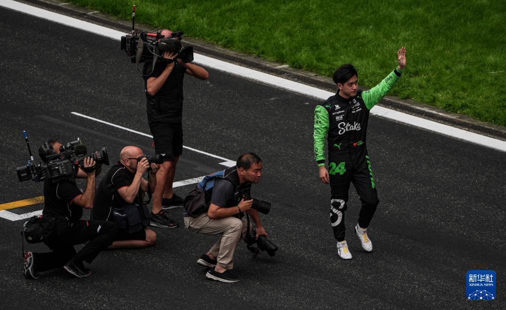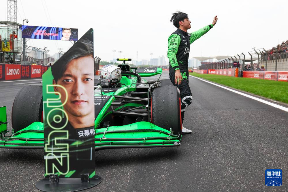 4月21日,索伯车队中国车手周冠宇在比赛后向看台观众挥手致意。新华社发(钱俊摄)
