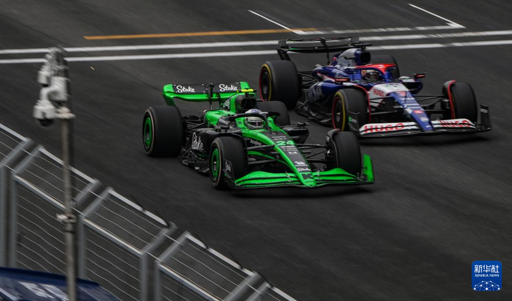 4月21日,索伯车队中国车手周冠宇(左)驾驶赛车在比赛中。新华社记者 夏一方 摄