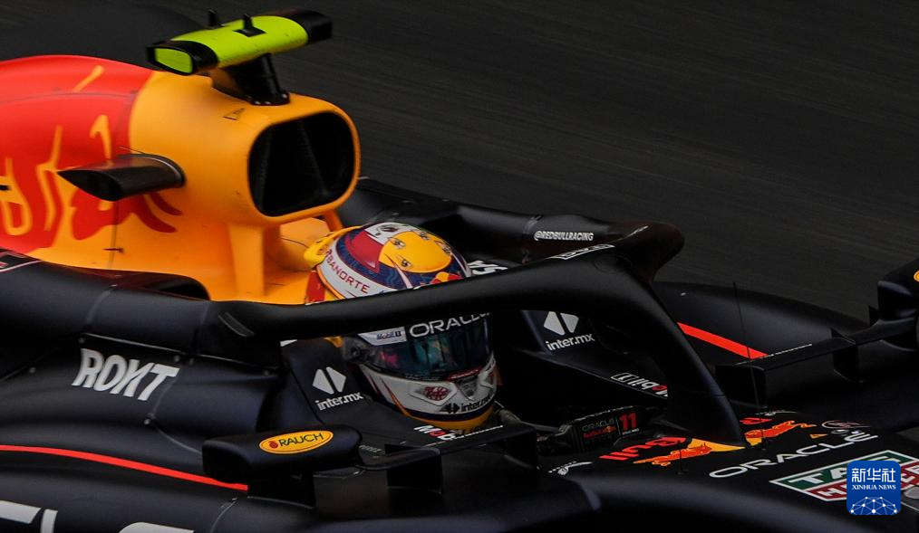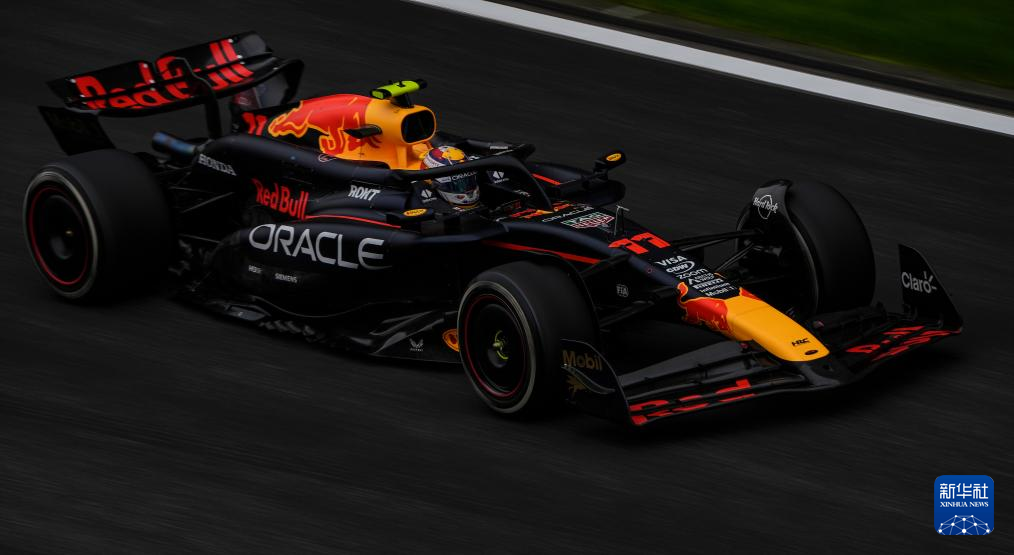 4月21日,红牛车队墨西哥车手佩雷兹在比赛中。新华社记者 夏一方 摄