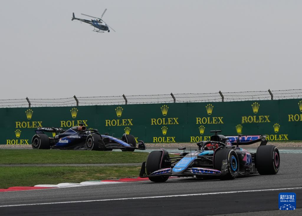4月21日,阿尔派车队法国车手奥康(右)驾驶赛车在比赛中。最终他位列第11。新华社记者 贺长山 摄